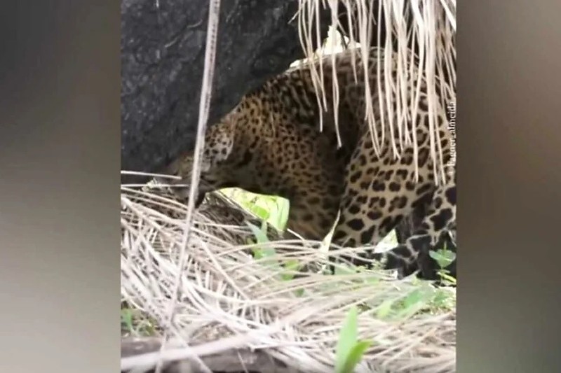 Casal de onças-pintadas é flagrado se ac...